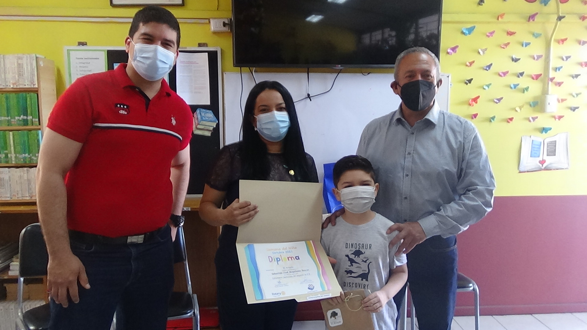 Hoy se realizó el reconocimiento y premiación de los estudiantes destacados de cada curso de la escuela por parte del Rotary Club "El Arrayán", entidad que forma parte de la Red de Apoyo de la Escuela este año 2021 representado por su presidenta doña Rocely Castillo T.. En dicha ceremonia, se entregó un diploma de reconocimiento y un presente a cada estudiante y un estímulo especial a la niña Aleska Echeverría B., del Quinto Año Básico como la más destacada entre los destacados.